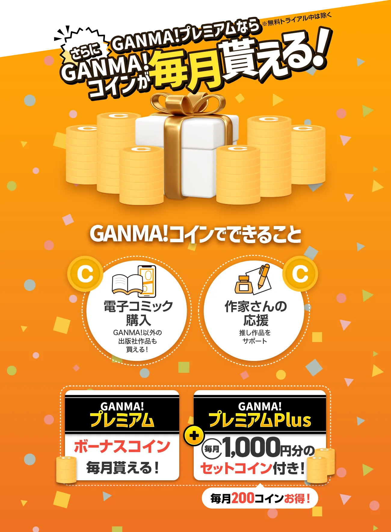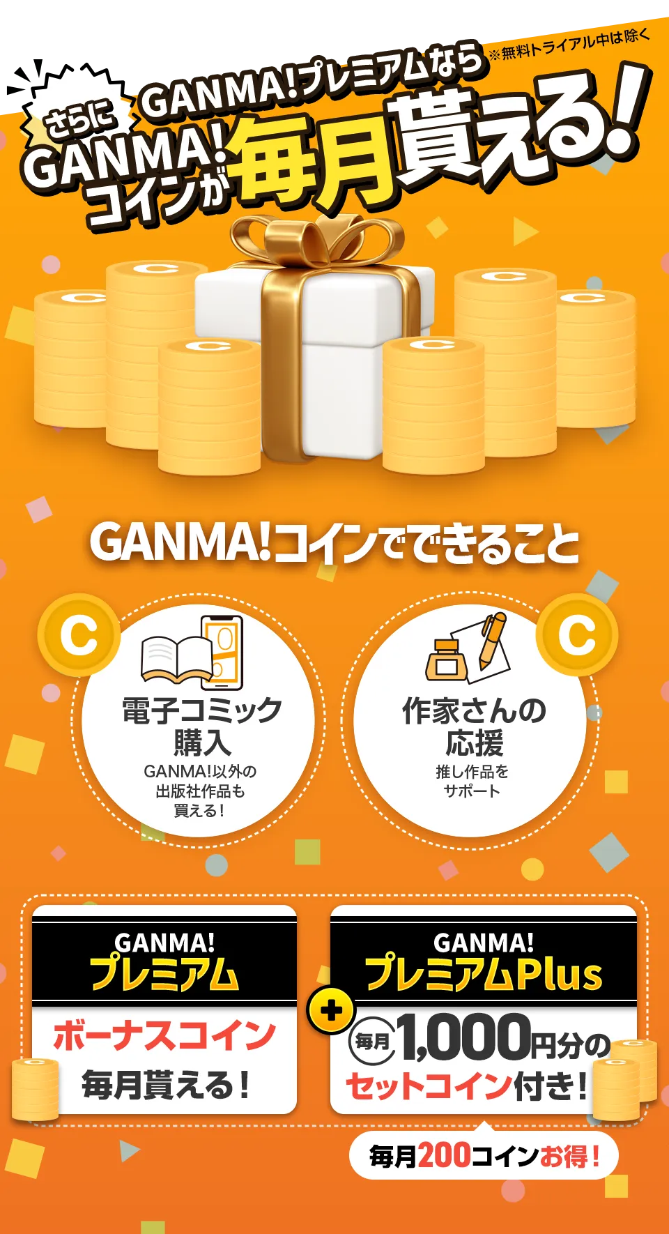 ※毎月のボーナスコイン付与は、GANMA!プレミアムの無料トライアル中は対象外です。