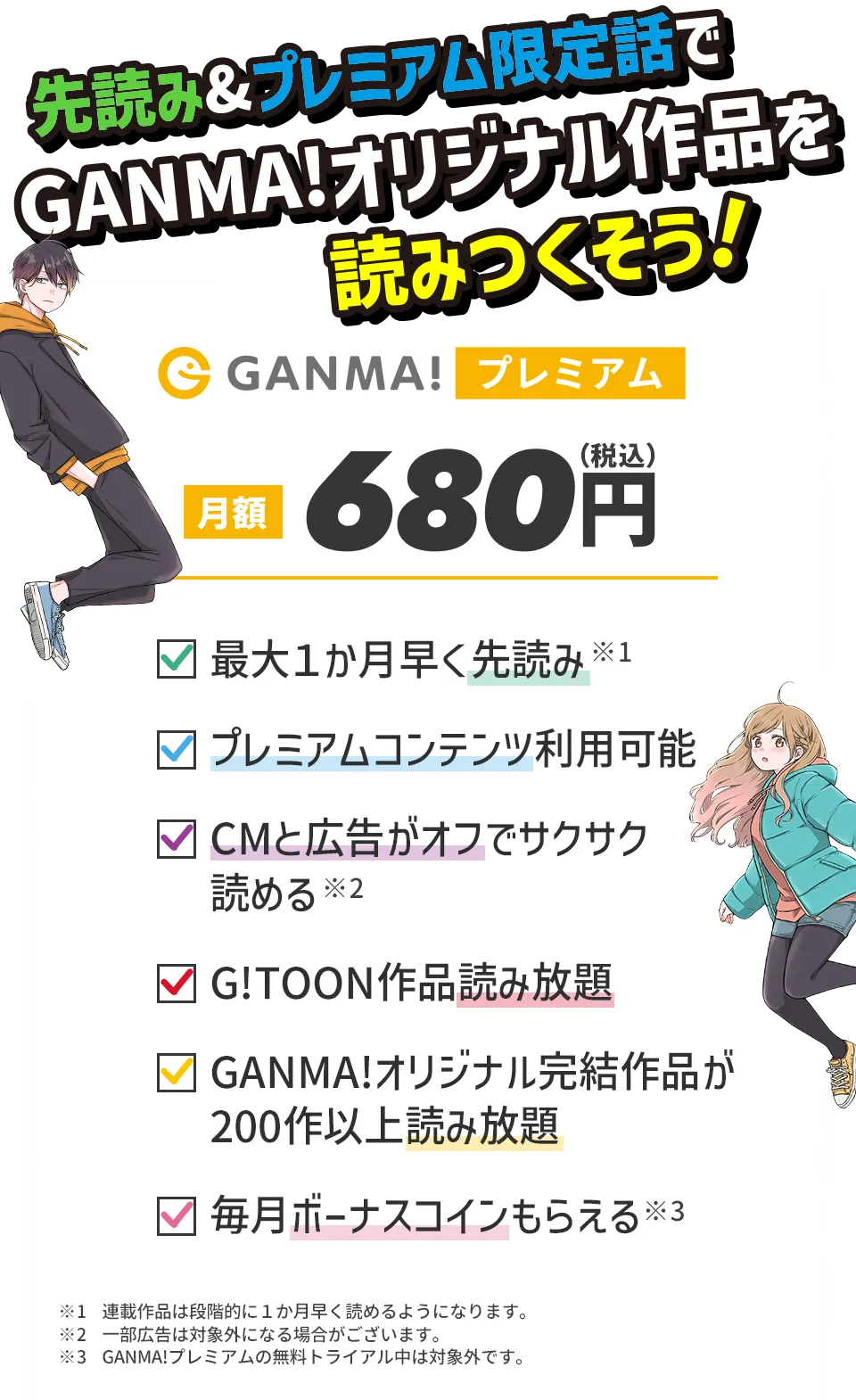 ※無料トライアルはGANMA!プレミアムのみが対象となります。